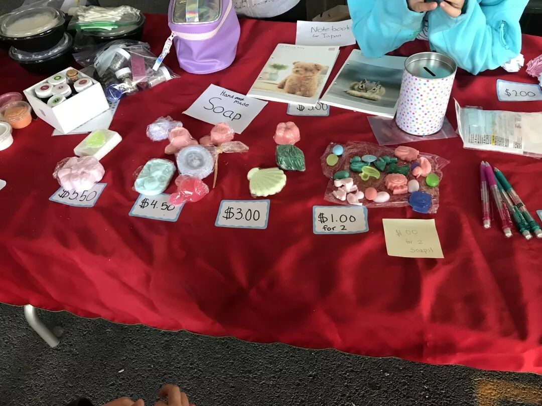 孩子们义卖自己制作的各种小物件,为来年的科技节筹款