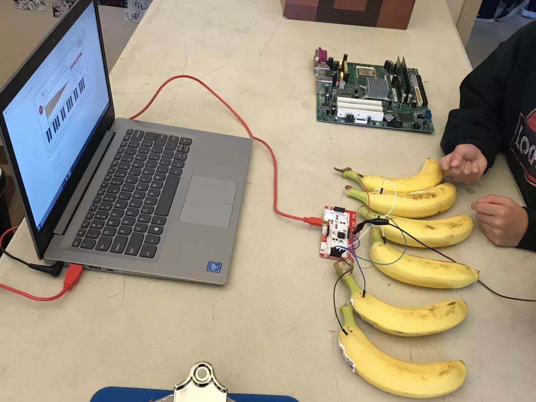 孩子们可以通过按压香蕉的方式,弹奏出美妙的音乐