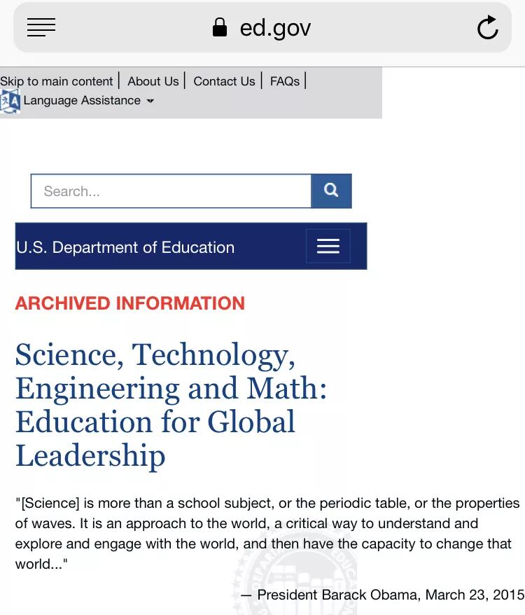 前美国总统奥巴马说:学生接受S.T.E.M教育的目标是在未来十年内,将美国学生的科学和数学素养从中游水平提升到世界顶尖水准。——这位总统先生是在2015年10月说的这段话。。。我真心希望他能说到做到。