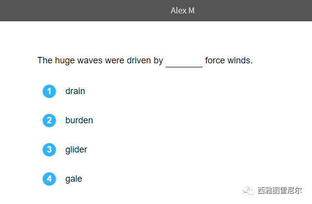举个例子,假设一个新学生叫Alex,老师并不了解他的阅读水平,就让他去电脑上去测试。Alex到电脑上去答题,这是一个自适应性测试,即由电脑给出阅读篇章和选择题,Alex做对一道题,电脑就会推出更难的下一题,Alex做错一道题,下一题则自动降低难度。