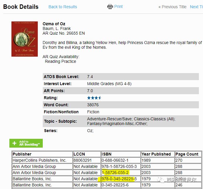 这是AR 系统中帮你挑选书的系统。并不是所有的书都是开卷有益,太难了读不懂打击积极性,太简单了没意义浪费时间。所以ARBookfinder就是一个很好的产品,你输入关键词,然后帮你把书找出来,详细列出这本书,是不是适合读。