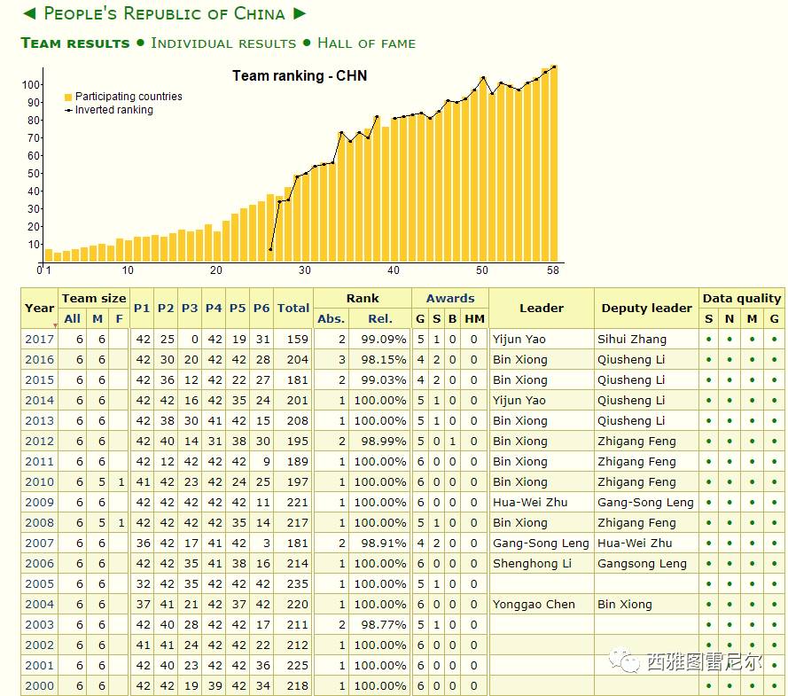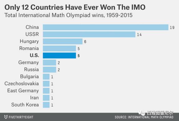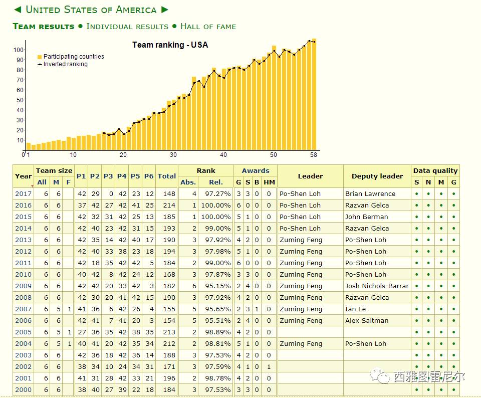中国的IMO训练还是卓有成效的,虽然参赛时间不长,但是金牌数遥遥领先。