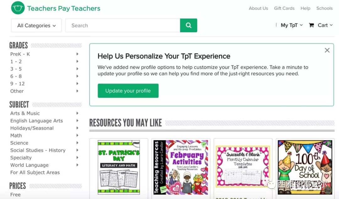 看到标题也许已有熟悉美国教育的读者猜出这是什么网站了,对,就是Teachers Pay Teachers(网址:https://www.teacherspayteachers.com/)。