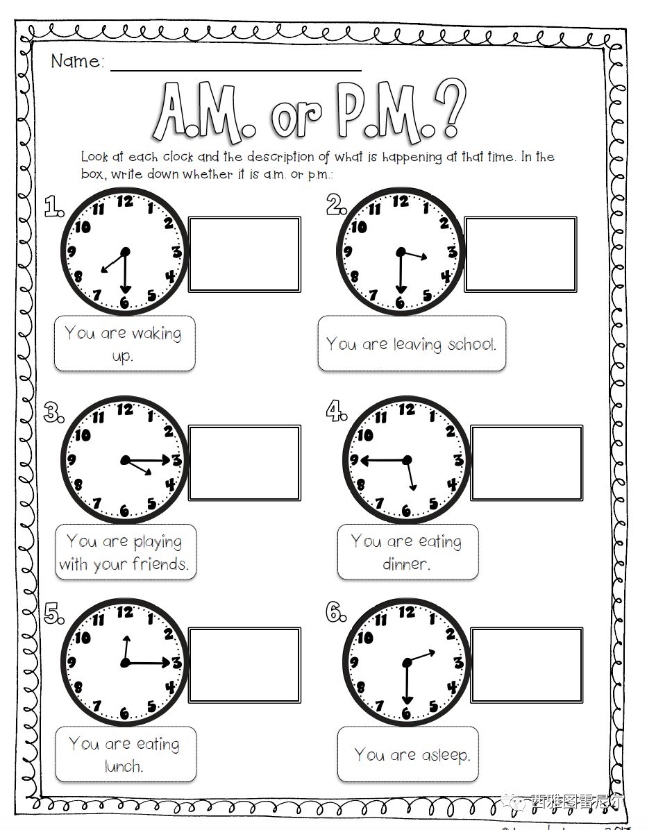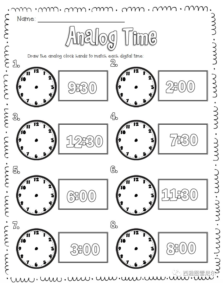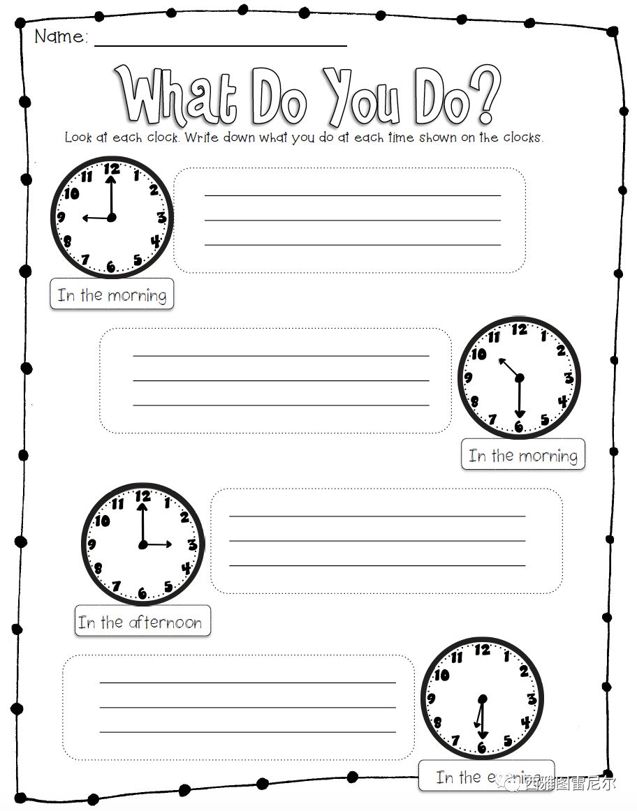 还有根据时间,写几句话来说明这个时间做什么事情的练习,数学和写作也联系起来了。不错不错,题目样式比较全面,练习题设计得也不枯燥。