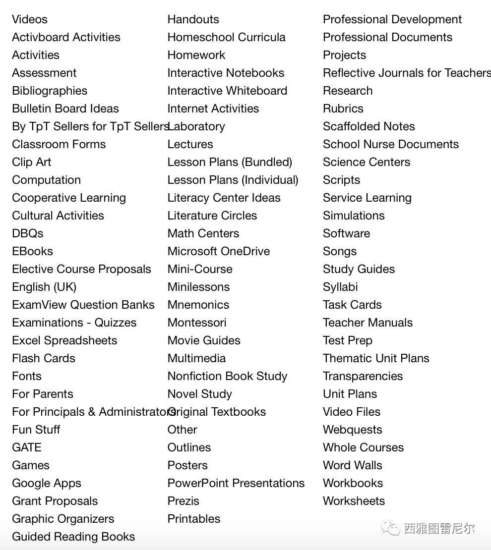 Teachers Pay Teachers(简称TPT)可以定位为一个教育资源交易平台。在这个平台上,不光美国,世界上所有老师都可以上传原创的教学资源,互相分享、借鉴。资源主题多样、内容广泛,从课程编排、练习题设计、考试内容、到工作规划,从语言、数学、科学、社会学到音乐美术,从幼儿园到高中、甚至成人教育,都可以在TPT上找到相关内容。对家长和学生来说,这里也是个教育宝藏。从这里也许你能搜到比市面上售卖的教辅练习册还要棒的学习材料。